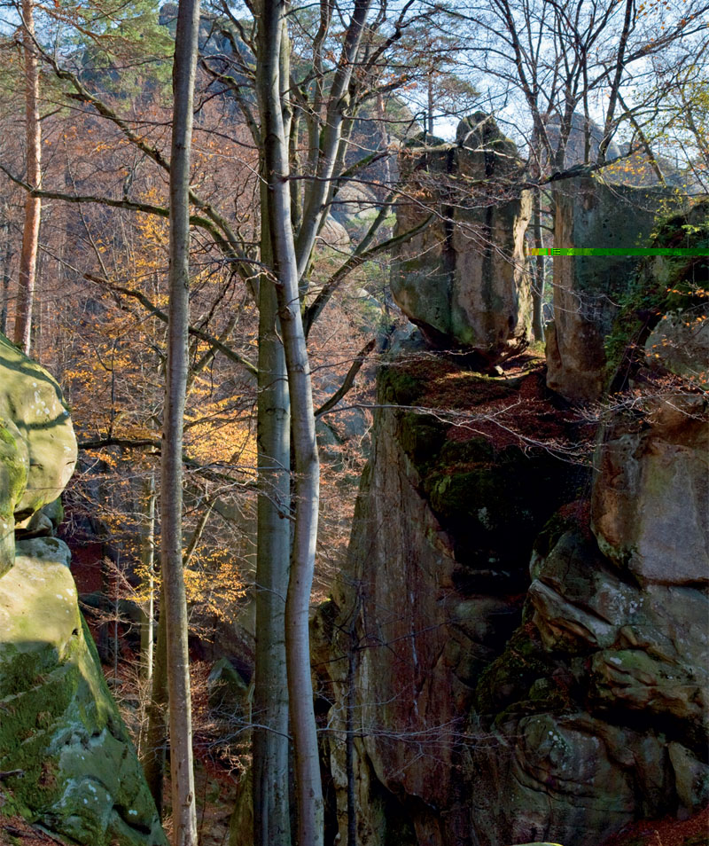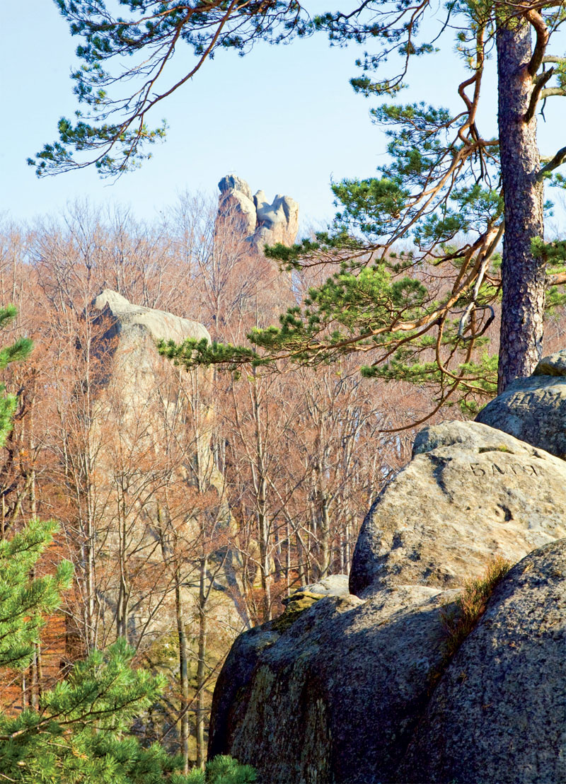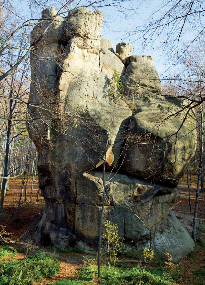 В этом каменном лабиринте шириной 200 м и длиной почти 1 км в старом буково-еловом лесу можно снимать фантастические фильмы. Каждая скала здесь — словно отдельный персонаж. Да и названия у них не совсем обычные: «Морда льва», «Кулак Довбуша», «Голова Довбуша», «Тюльпан», «Лялька», «Броненосец» и «Ведьма». То же и с пещерами. Самые известные – «Спальня Довбуша» (внутри можно увидеть каменные лежаки), «Комора» и «Холодильник». Эти скалистые выступления песчаников высотой до 80 м образовались более 70 миллионов лет назад на дне моря. За столь длительный период времени песчаник спрессовался, выветрился и сгладился, и сейчас приобрел форму лабиринта.