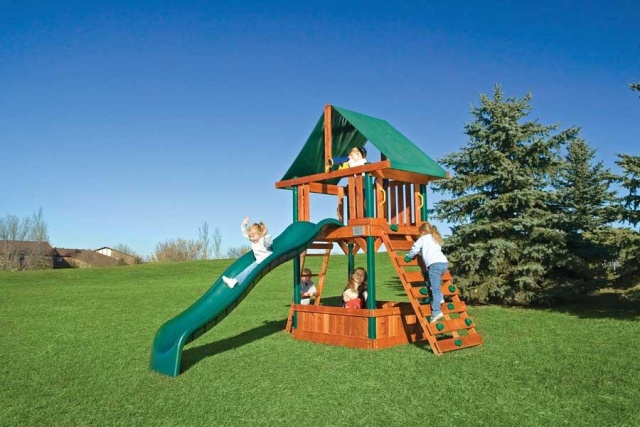Игровой комплекс изготовлен из кедра, красного дерева и древесины куннингамия